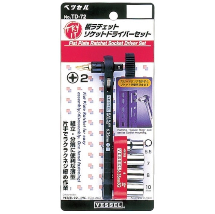 VESSEL OEM TD-72 Flat Plate Ratchet Screwdriver Set A/F5.5,7,8,10, Japan