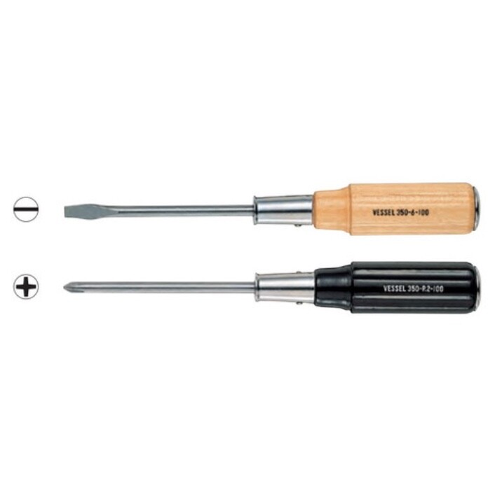 VESSEL OEM 350 Wood Grip Tang Throug Screwdriver Japan