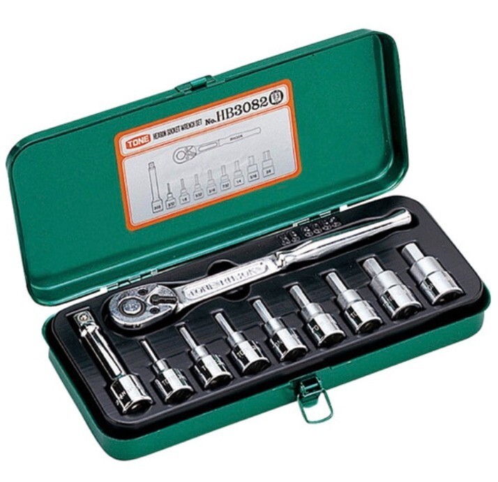 TONE OEM HB3082 3/8″Drive 3-12 Hexagon Wrench Socket Set 10 Tools JAPAN